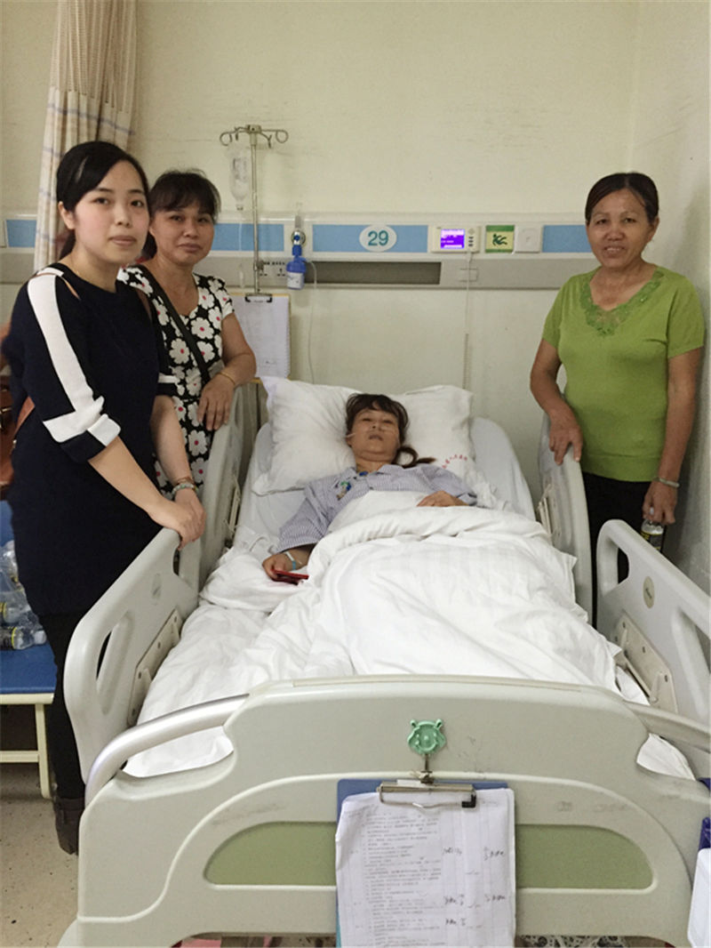 2018年4月16日下午14:00,行政人事部助理黃曉純與食堂主管吳燕嬌,工友陳顯金代表公司前往海南省人民醫(yī)院探望因生病住院做手術(shù)的員工方秀蓉,并送去公司的慰問跟關(guān)懷。剛剛做完手術(shù)的阿蓉姨,因長時(shí)間未進(jìn)食,身體很是虛弱。但精神狀態(tài)稍好些。她對公司的慰問表示感激,表示會好好養(yǎng)病,早點(diǎn)回來工作。