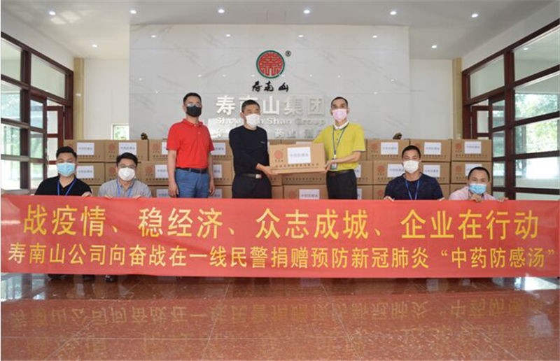 2020年3月3日上午,海南壽南山參業有限公司通過海南省醫藥行業協會向海南省公安廳、海口市公安局的一線干警捐贈了價值11.7萬元的預防新冠肺炎“中藥防感湯”。省廳卜主任、市局陳主任、協會魯秘書長、我司副總經理戴初雄先生攜各部門經理共同出席了捐贈儀式。 省廳卜主任、市局陳主任指出,疫情防控進入關鍵期,疫情防控物資相對緊張。海南壽南山參業有限公司在這重要關頭,充分發揮基層組織的戰斗堡壘作用,在認真履行企業自身管控職責的同時,不忘社會責任,不忘愛心公益事業,帶著物資,帶著感情慰問一線干警,展示了我市基層組織的優良作風和良好風尚,使我們深受感動,倍受鼓舞。